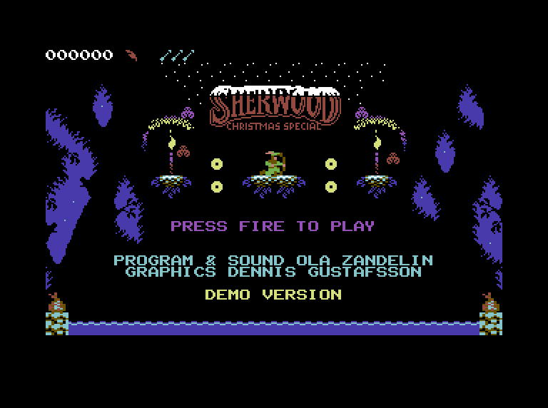 Sherwood Christmas Special is a free to play demo of the commercial title Sherwood for the Commodore 64, developed by Griffinsoft and published by Psytronik Software. The game featuring action and platforming action is both PAL and NTSC compatible and works on original hardware, the C64 Mini/Maxi as well as the soon to be delivered Commodore 64 Ultimate.